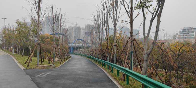 河润建设有限公司承建的济宁蓼河绿道绿化工程,位于山东省济宁市高新开发区,东临鸿雁湖公园,西与嘉达路接壤,占地面积,主要项目有乔木、灌木、地被及草坪种植、人行广场、停车场、管理房、亮化、给水管道、7米园路重建、下穿路u型槽等工程。2021年11月开工,计划工期8个月。